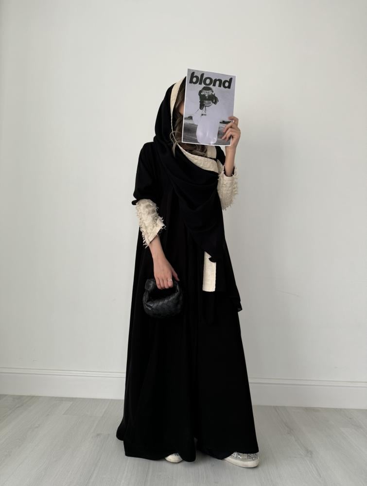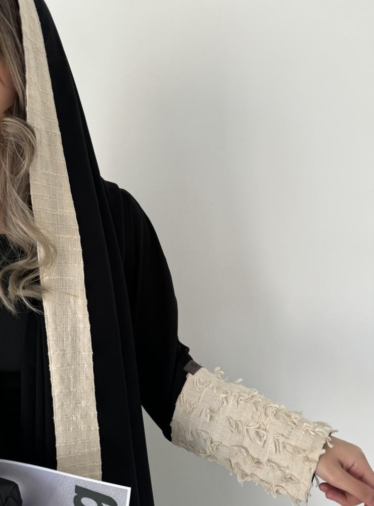 القصة : كلوش مع اضافة قماش لنن 100% بالاكمام